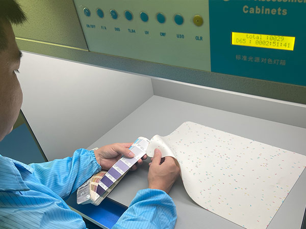 • 擁有 對色燈箱、耐磨測試機、二次元、耐黃變試驗箱、恒溫恒濕試驗箱等生產檢測設備